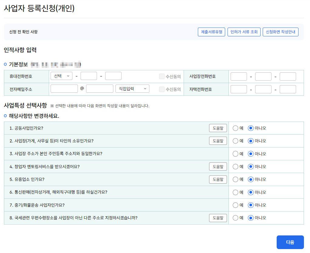 - 심사 후 즉시 또는 1~3일 내 사업자등록번호 부여