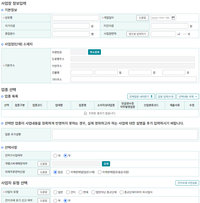 - 업종에 따라 추가 서류가 필요할 수 있음 (예: 유흥업, 금융업 등)
