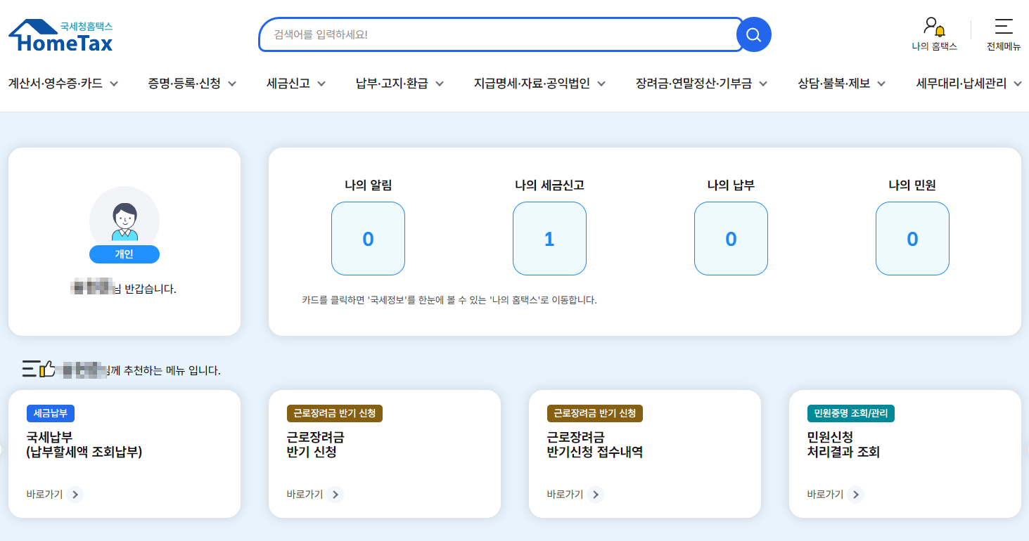 1.국세청 홈택스 접속 (https://www.hometax.go.kr) 및 로그인