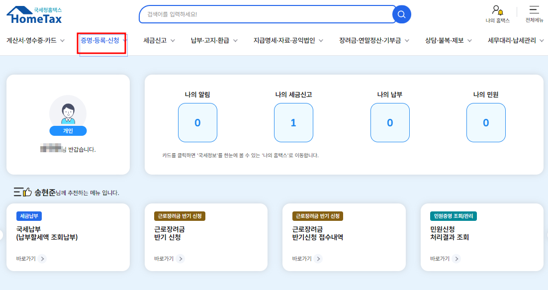 1. 국세청 홈택스 접속 (https://www.hometax.go.kr)