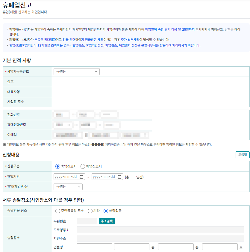 - 폐업일 이전 신고 필수 (지연 신고 시 가산세 부과 가능)